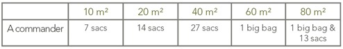 Voici le nombre approximatif de sacs et/ou de big-bags d'Argibase à commander en fonction du nombre de m² à réaliser, en épaisseur moyenne de 1cm.